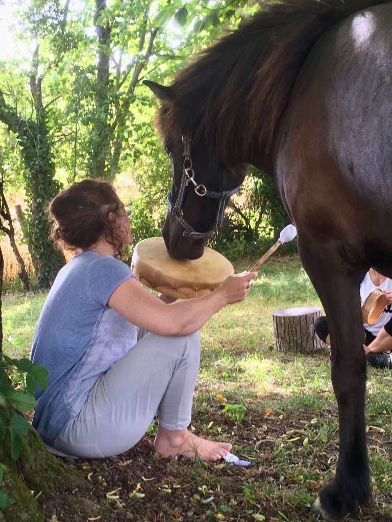 J’ai passé une après midi riche en émotions, découverte de soin à travers les chevaux qui est vraiment magique, et une connexion forte avec le tambour et la très belle voix de Carole.