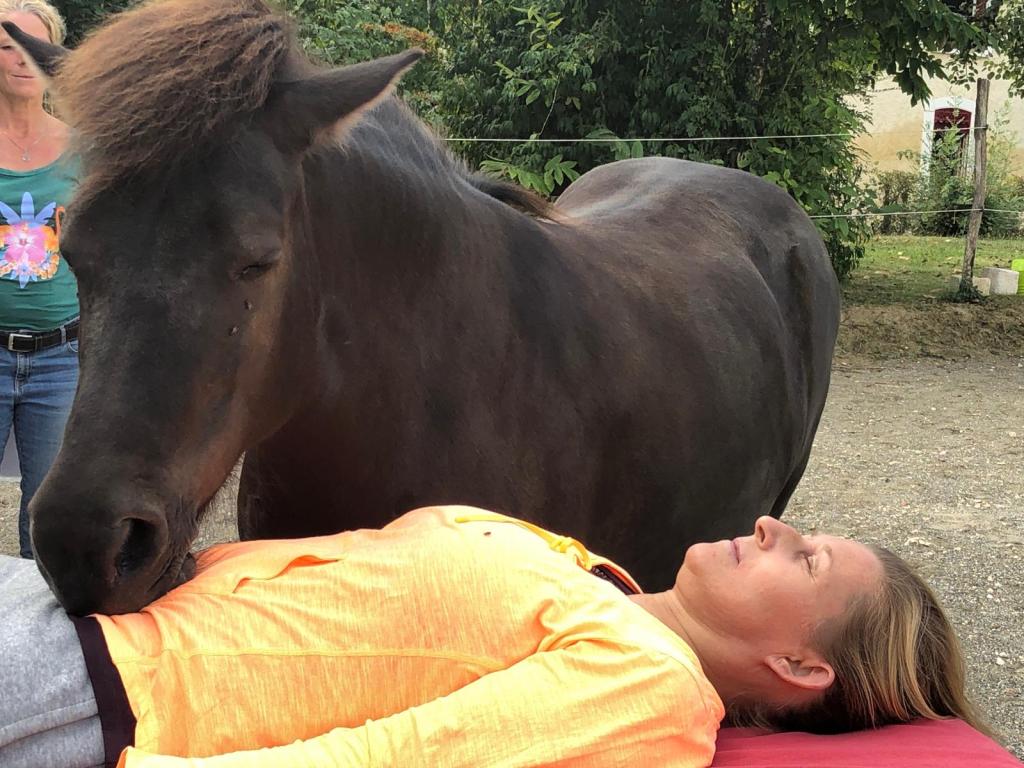 À travers des exercices guidés – par la respiration, le mouvement, l’attention bienveillante, la visualisation, l’intention claire – on peut harmoniser son énergie subtile et ainsi les domaines de vie problématiques et le corps physique. C’est une méthode d’auto-guérison que j’ai intégrée dans ma pratique d’équi-coaching et que j’appelle l’équi-coaching énergétique.